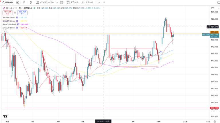 ちなみに上記で挙げている画像はドル円の日足チャートです。