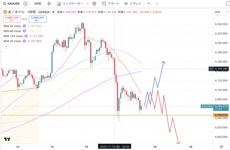 レンジを形成するかな?ここからどうなるか?という状況に見えますね。