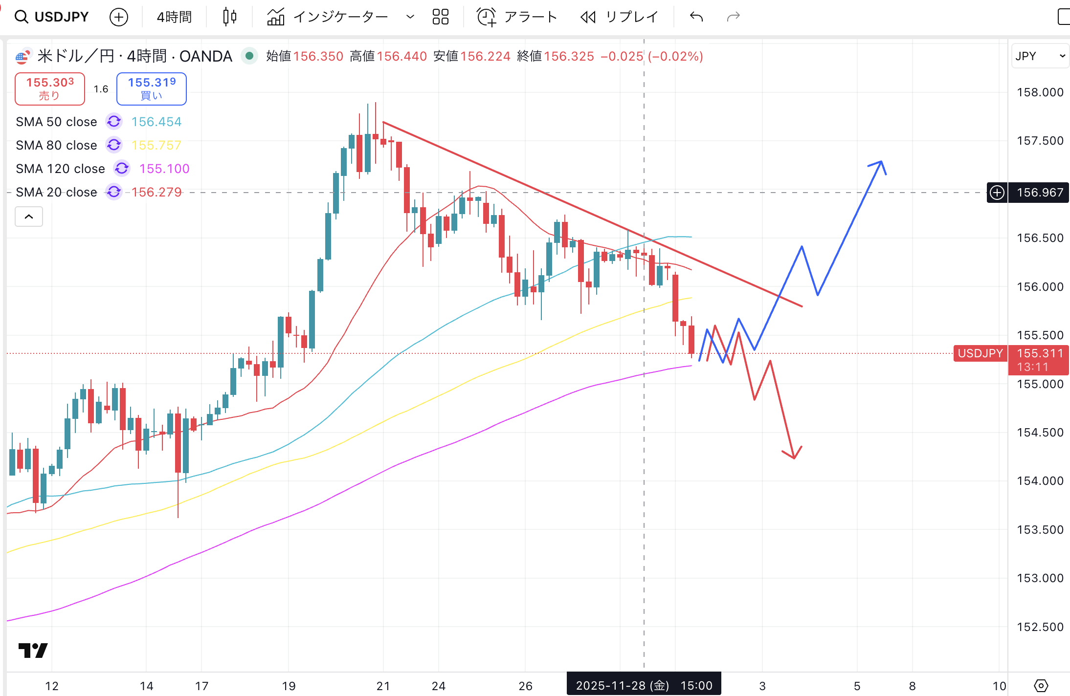 今ドル円は下がっていて、これから下がるのか?というシーンに見えていると思います。